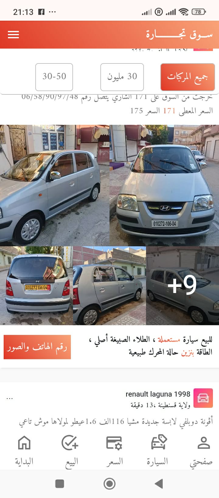 متوفر أكثر من 650 سيارة للبيع والتبديل مع الاسعار شحال سامو شحال طالب رقم الهاتف الولاية الصبيغة نوعية المحرك ديزال بنزين والسنة شحال ماشية وكل يوم نبعثلك الجديد عبر التطبيق تاع سوق Eldevices
