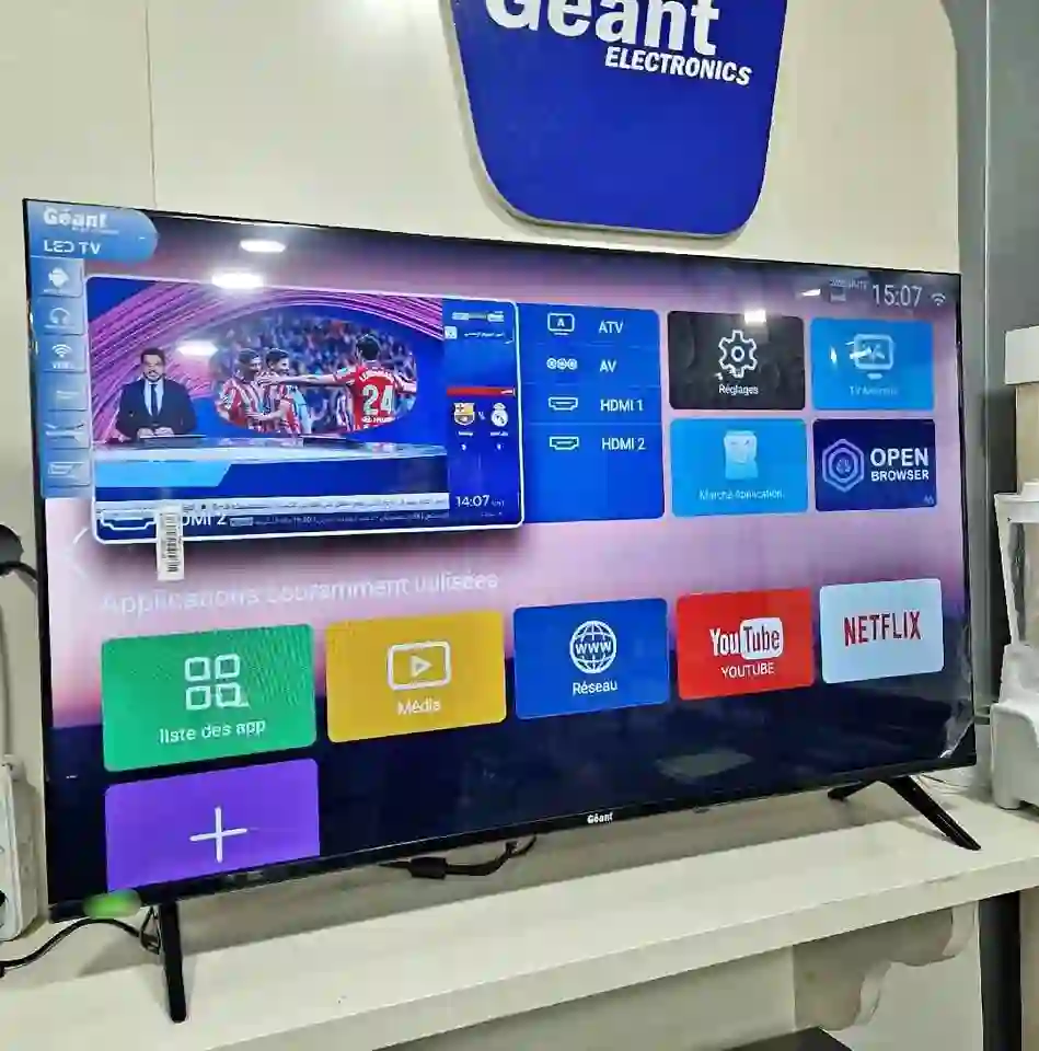 راك تحوس على تلفزيون ذكي، عصري، وبسعر ما تلقاهش في بلاصة أخرى؟نقدم لك تلفاز Geant 32" Android TV بتصميمه الأنيق بدون حواف (Frameless) شاهد كلش في بلاصة وحدة: افتح يوتيوب، نيتفليكس، وشاهد آخر الأفلام والمسلسلات مباشرةً.